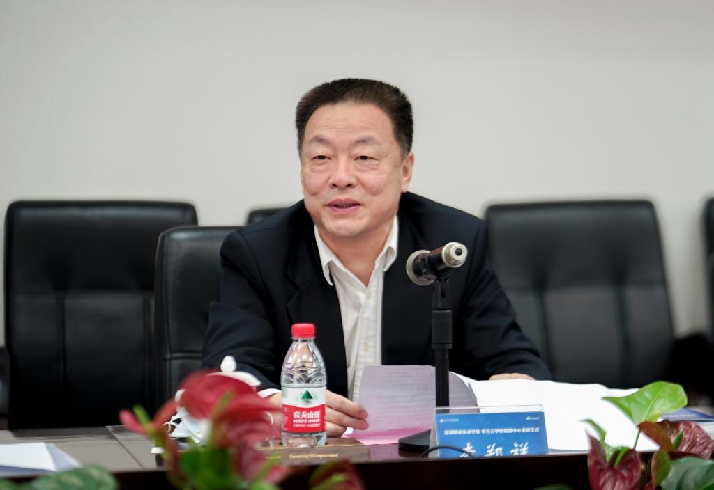正值學(xué)校二十七周年校慶之際,4月28日,由我校和華為技術(shù)有限公司(以下簡(jiǎn)稱“華為”)合作共建的深圳職業(yè)技術(shù)學(xué)院“華為云學(xué)院鯤鵬中心”(以下簡(jiǎn)稱“深職院鯤鵬中心”)的揭牌儀式在留仙洞校區(qū)明德樓109會(huì)議室舉行。市工業(yè)和信息化局副巡視員李鄭祥、信息化和軟件服務(wù)業(yè)處處長(zhǎng)江雪明,市教育局職業(yè)與終身教育處處長(zhǎng)鐘子榮,南山區(qū)科技創(chuàng)新局局長(zhǎng)劉石明、副局長(zhǎng)都政,南山區(qū)科技創(chuàng)業(yè)服務(wù)中心副主任黃恒中,華為咨詢與集成使能服務(wù)部總裁馬海旭、華為深圳政企業(yè)務(wù)總經(jīng)理向軍,學(xué)校黨委書(shū)記、校長(zhǎng)楊欣斌等出席揭牌儀式。會(huì)議由副校長(zhǎng)馬曉明主持。
