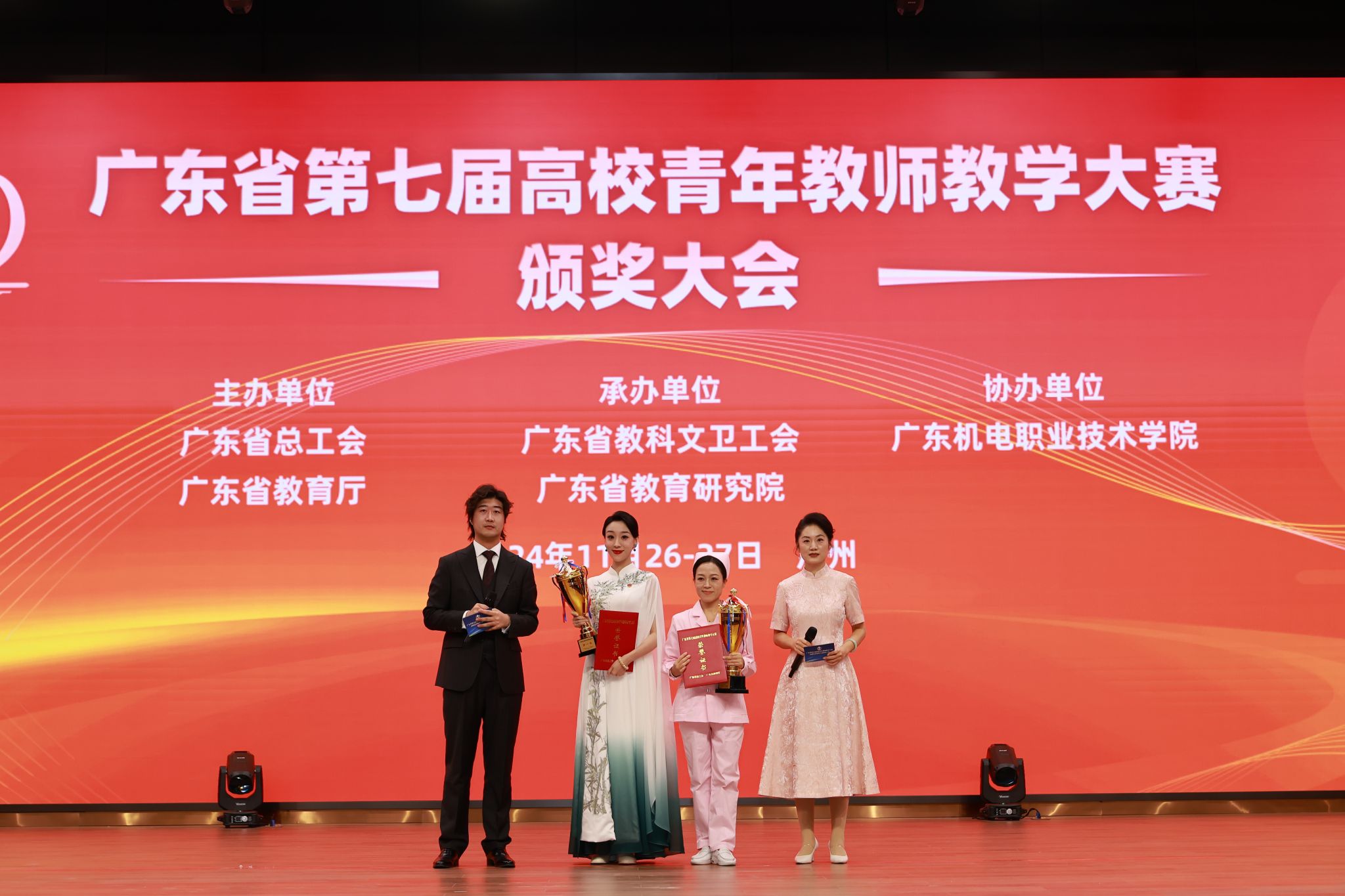 11月26日—27日,由廣東省總工會、廣東省教育廳主辦,省教科文衛工會、省教育研究院承辦的廣東省第七屆高校青年教師教學大賽高職總決賽暨大賽頒獎大會在廣東機電職業技術學院舉行。我校管理學院栗璐雅博士喜獲文科綜合組冠軍,將被授予省五一勞動獎章。工業訓練中心(創新創業學院)楊瑋民博士獲理工綜合組一等獎,數理化小組第一名。本屆賽事我校共獲得一等獎5項,二等獎8項,一等獎數量和獲獎總數均位居全省第一。