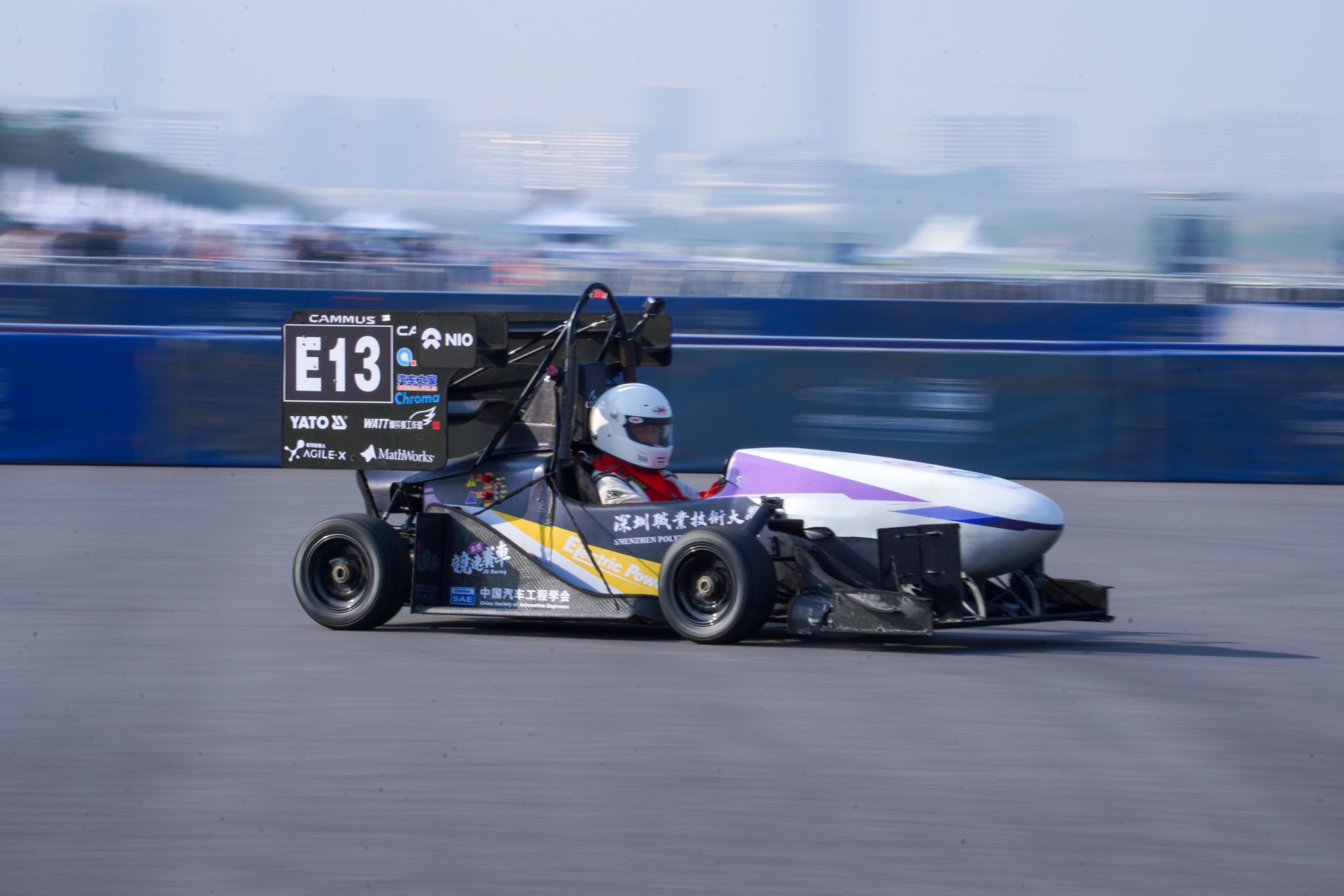 2024“蔚來杯”FSEC匯聚了來自中國、德國和新加坡的82支車隊,競爭異常激烈。賽事除了考驗車隊的賽車性能,還對參賽隊伍的賽車設(shè)計、成本控制、招商宣傳等能力進(jìn)行綜合評估。在動態(tài)賽8字繞環(huán)項目中,深職大魅影方程式賽車隊的電車展現(xiàn)了出色的操控性能,單項成績位列全國第7;直線加速和高速避障同樣表現(xiàn)優(yōu)異,穩(wěn)居國內(nèi)高校領(lǐng)先水平。
