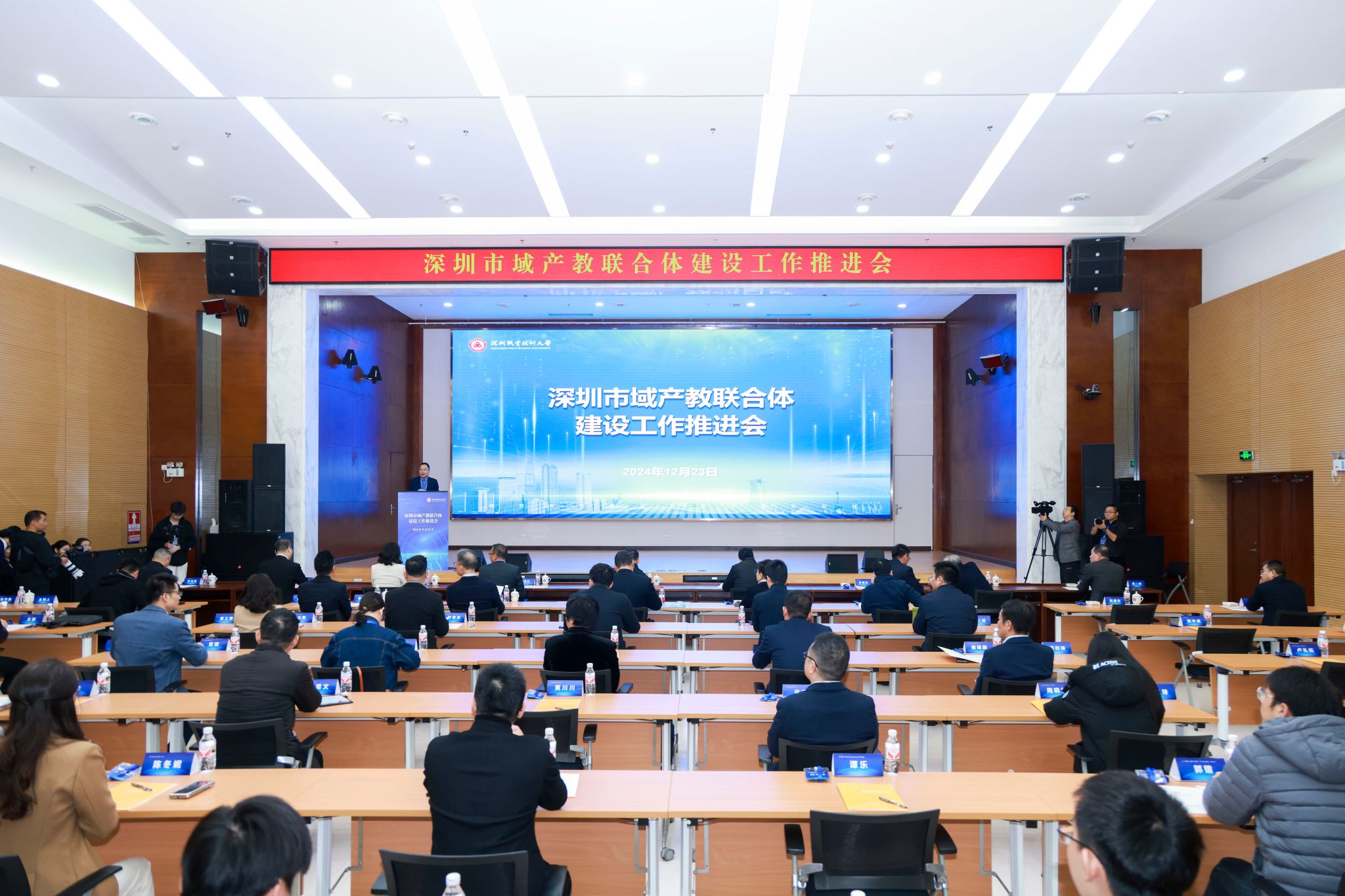 為高質(zhì)量推進(jìn)市域產(chǎn)教聯(lián)合體建設(shè)工作,落實(shí)落細(xì)教育部關(guān)于進(jìn)一步加強(qiáng)市域產(chǎn)教聯(lián)合體建設(shè)及廣東省政府工作報(bào)告、深圳市政府工作報(bào)告中關(guān)于做好聯(lián)合體建設(shè)的相關(guān)要求,12月23日,深圳市域產(chǎn)教聯(lián)合體建設(shè)工作推進(jìn)會(huì)在我校舉行。