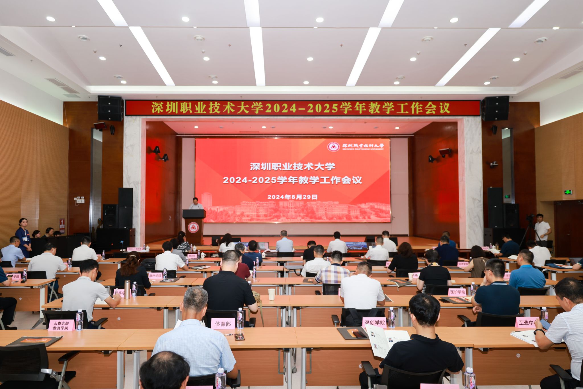 開學典禮在西麗校區體育館舉行。學校黨委書記楊欣斌,黨委副書記、校長許建領,全體黨委委員,各二級學院院長、書記在主席臺就座。9月12日,深圳職業技術大學2024級新生開學典禮在西麗校區體育館舉行。學校黨委書記楊欣斌,黨委副書記、校長許建領,全體黨委委員,各二級學院院長、書記在主席臺就座。各職能處室負責人,各二級學院副書記、教師代表、班主任代表、新生輔導員代表和2024級2300余名新生代表參加典禮。各學院設置直...