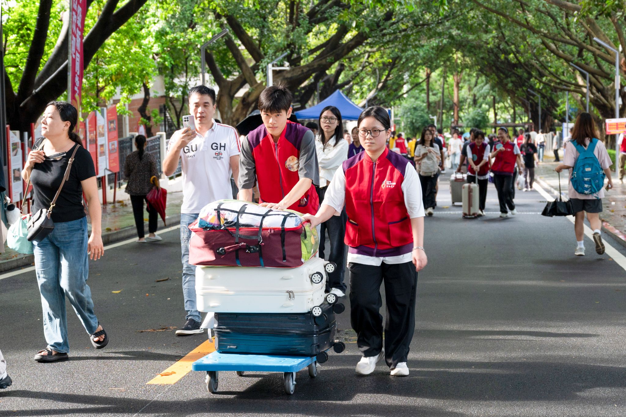 學校迎來9000余名2024級專科新生。秋雨浸潤洗塵后,迎新啟航萬象新。9月7-8日,深圳職業技術大學迎來9000余名2024級專科新生。一大早,學校黨委書記楊欣斌,黨委副書記、校長許建領,副校長董朝君、李小元及相關部門負責人就來到迎新現場,詳細了解各學院的新生報到人數、報到流程、各類物資保障等情況,向滿懷憧憬的新同學們表示熱烈歡迎,也為現場辛勤工作的教職員工及志愿者團隊送上誠摯感謝。楊欣斌與新生親切交談。海依拉...